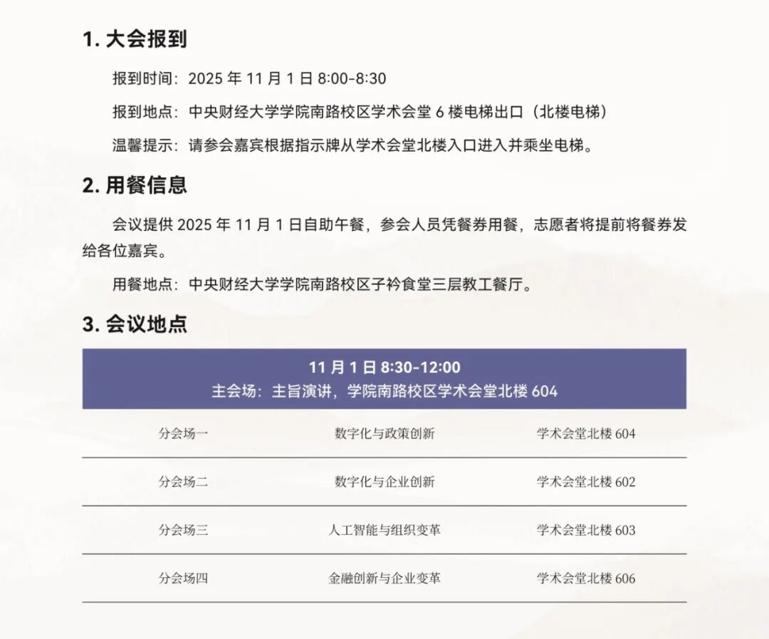 目前中央财经大学校门实行预约入校管理,我们已在参会回执中向参会嘉宾收集相关信息并统一申报入校手续,请参会嘉宾入校随身携带身份证件(身份证或护照),验证预约身份后方可进入校园。
