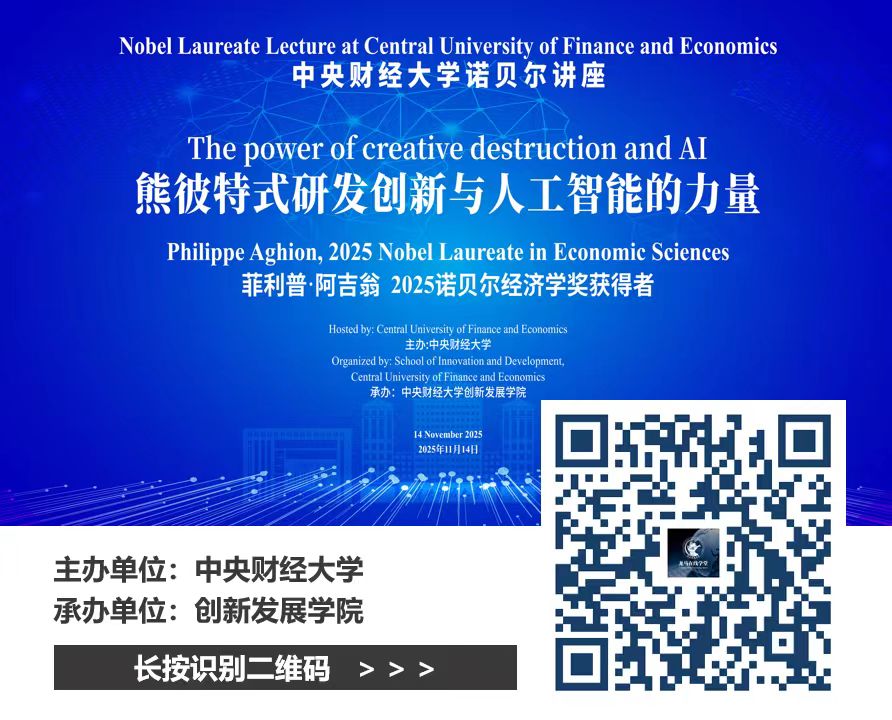 2025年诺贝尔经济学奖刚揭晓,诺奖得主菲利普・阿吉翁(Philippe Aghion)教授就带着题为“熊彼特式研发创新与人工智能的力量”的专题讲座走进了中央财经大学!作为前哈佛大学教授,现法兰西学院教授和院士、欧洲工商管理学院(INSEAD,巴黎)以及伦敦政治经济学院(LSE)教授、创新驱动型内生经济增长理论的开拓者,这位经济学大师,为我们讲述了如何用熊彼特式增长理论破解经济增长的核心密码,并给我国提供了很多建设性的政策建议。