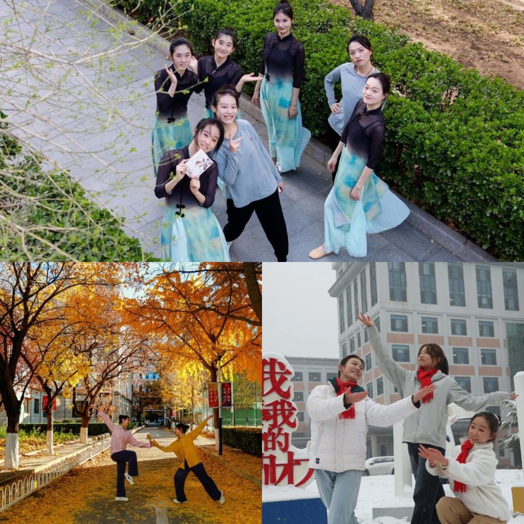 面对学校大型活动宣传视频、校园四季主题视频的拍摄,针对不同主题任务、抢抓花期、落叶、冬雪等时效性需求,她与拍摄同学沟通协调,快速组织人员、根据团员特点设计动作,现场灵活调整优化,累计配合“神马中财”产出近10条优质内容。在一次次时间紧,任务重的考验中,她的编创能力、统筹能力与应变能力快速提升,成为团队可靠的领航者,也以实际行动为校园美育宣传贡献力量。