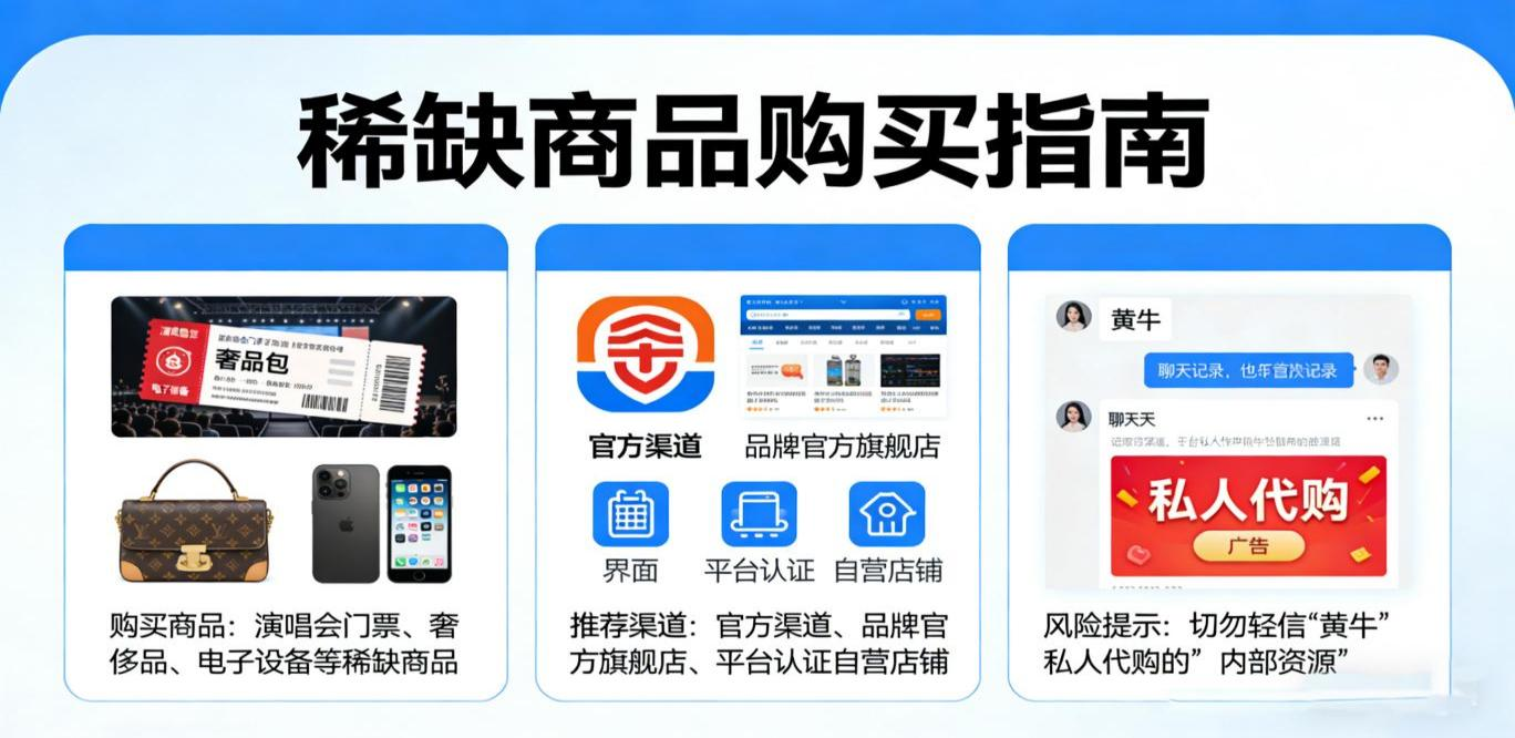 这类诈骗主要针对稀缺、紧俏商品,利用大家“怕错过”“想捡漏”的心理,伪装成黄牛、靠谱代购,设置圈套。