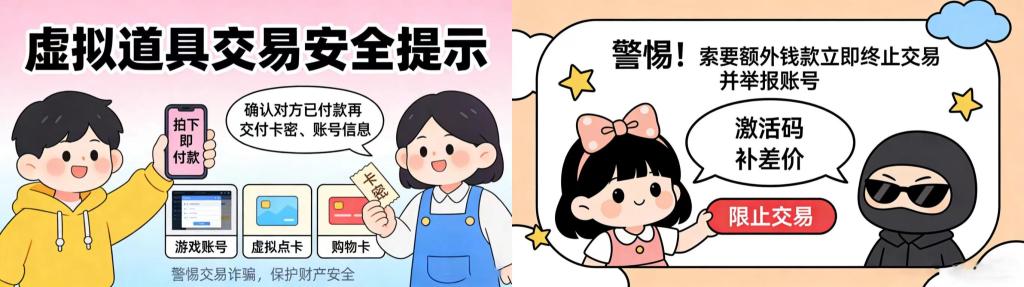 不少同学在闲鱼等平台购买虚拟商品,骗子以低价、绝版、预售为诱饵,谎称付款即发货。得手后又以激活码、补差价等为由,继续索要钱财。一旦拒绝便立刻失联,最终道具落空、钱财尽失。