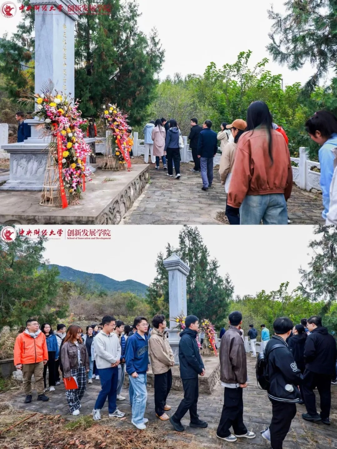 上午八时许,全体师生抵达活动地点后,前往新王峪村革命烈士纪念碑瞻仰。师生党员们怀着无比崇敬的心情列队肃立,缓步绕行纪念碑,向长眠于此的抗战烈士致敬,以此表达对革命先辈的深切缅怀与无限敬仰。
