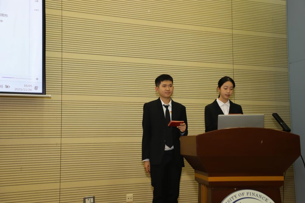 组织部负责人王麒皓总结了本次基础团校的开展情况。他回顾了活动从课程策划到落地实施的全过程,重点介绍了围绕“财经报国,财菁有为”主题设计的理论教育、技能培训、定向越野等多元模块。