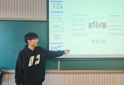 数理经济与数理金融25-1团支部创新设计“谁是卧底・反诈版”小游戏,让团员在互动中强化辨别能力。数理经济与数理金融25-2团支部以转盘抽选答题、情景反诈大挑战为核心,设置刷单返利、校园贷等高发骗局情景,组织团员编排刷单诈骗主题微剧,让反诈知识在趣味演绎中深入人心。