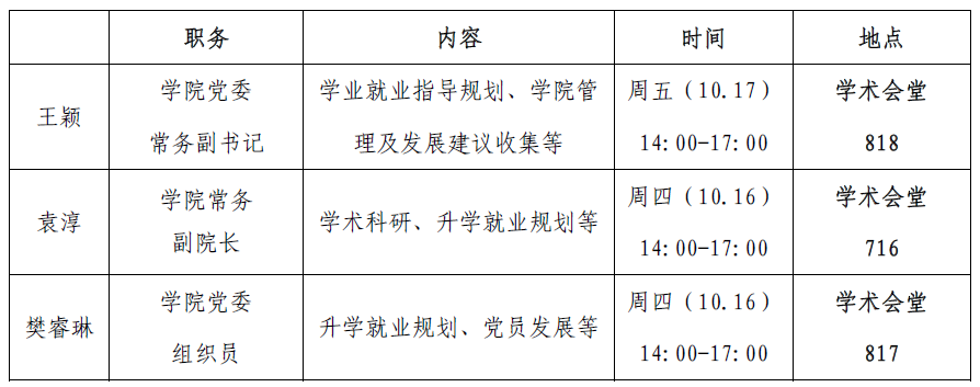 “书记院长开放日”旨在搭建师生交流的平台,畅通问题反馈渠道,进一步加强学院领导与师生之间的交流,倾听学生心声,了解学生所想,回应学生诉求,服务学生成长,集思广益、凝聚共识,切实解决学生在学习生活中遇到的问题,持续营造开放、包容、和谐的学院氛围。
