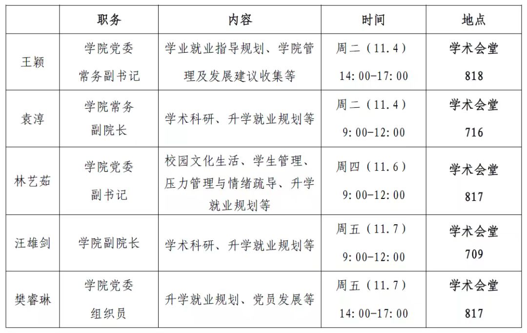 “书记院长开放日”旨在搭建师生交流的平台,畅通问题反馈渠道,进一步加强学院领导与师生之间的交流,倾听学生心声,了解学生所想,回应学生诉求,服务学生成长,集思广益、凝聚共识,切实解决学生在学习生活中遇到的问题,持续营造开放、包容、和谐的学院氛围。