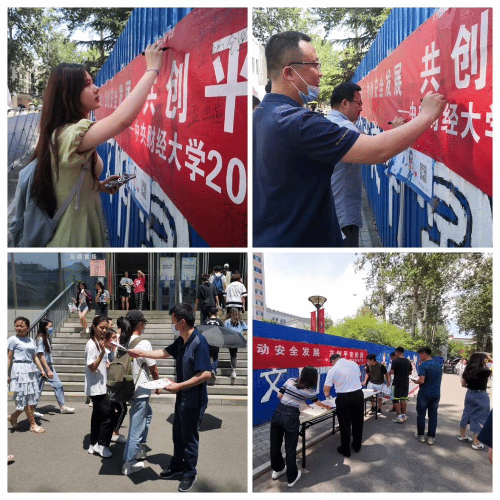 本次宣传教育活动以“落实安全责任,推动安全发展,共创平安校园”为主题,采取线上线下相结合的方式,线上利用“平安中财”微信公众号和学生干部微信群等渠道,推送宣传安全知识;线下组织开展宣讲活动,在食堂广场人流密集时段张贴海报、摆放展板、发放传单、组织横幅签名。此外,保卫处组织开展了“我和平安有个约定”安全知识竞赛,动员广大学生关注校园安全,弘扬了生命至上、安全第一的思想。