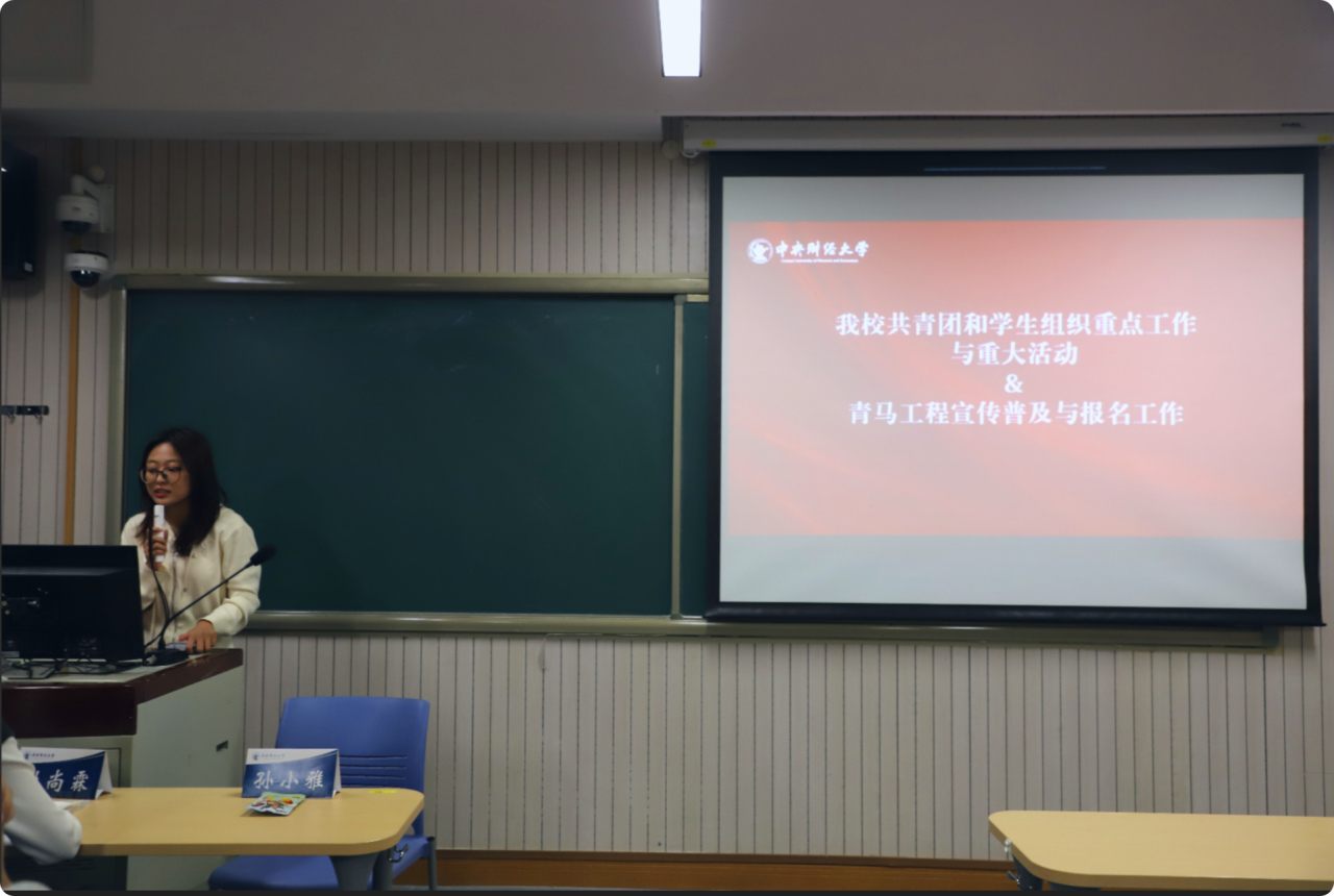财政理论25团支部“芮+”导师孙小雅为大家讲解我校共青团和学生组织重点工作和重大活动,并讲授青年马克思主义者培养工程宣传及动员工作。其中包括校级团学组织框架及各部门介绍,青马工程遴选与运行机制以及青马班活动介绍与意义。