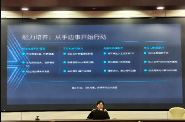 1月11日上午,“财经人才职场胜任力分析”主题课程邀请智辰半导体联合创始人、中央财经大学校外创业导师邱晔进行分享。他解答了同学们在新时代浪潮中何去何从的职业迷茫,通过剖析主流就业赛道和解析跨行业通用岗位带领同学们了解职业机会、澄清职业发展认知误区,并仔细剖析了职场必备的4大能力,即职业态度与价值观、专业和研究能力、沟通与协调能力、学习与创造能力。他强调,能力的培养在于从手边的事开始行动,指出AI时代冲击下青年学生应培养的无法替代的能力。讲座最后,他还贴心地为同学们附上了本科及研究生阶段分阶段修炼的行动指南。