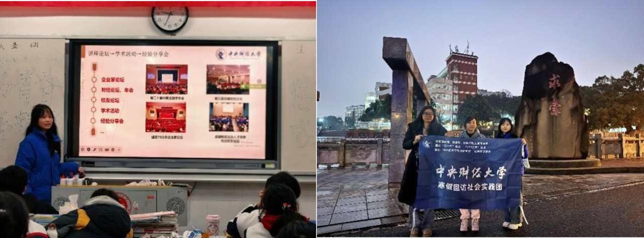 为深入学习贯彻党的二十届四中全会精神和全国教育大会精神,全面贯彻落实习近平总书记关于青年工作的重要思想,引领中财大青年深入实践、服务家乡建设发展。根据学校团委工作部署,结合学院实际,创新发展学院团委组织开展“财经报国青年有为”2026年“返家乡”寒假社会实践。今年寒假,学院47支实践队伍、258名师生,奔赴全国20个省(自治区、直辖市)、50个地级市开展实践活动。 在这些实践队伍中,有哪些团队令人印象深刻?他们又取得了怎样的成果?今天,我们将目光聚焦于团中央“返家乡”社会实践专项与“星耀计划”党团队育人一体化专项行动的优秀团队,一同回顾他们的实践足迹,感受青春力量。