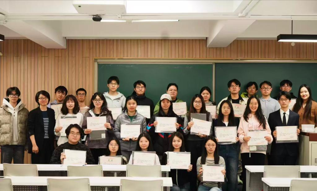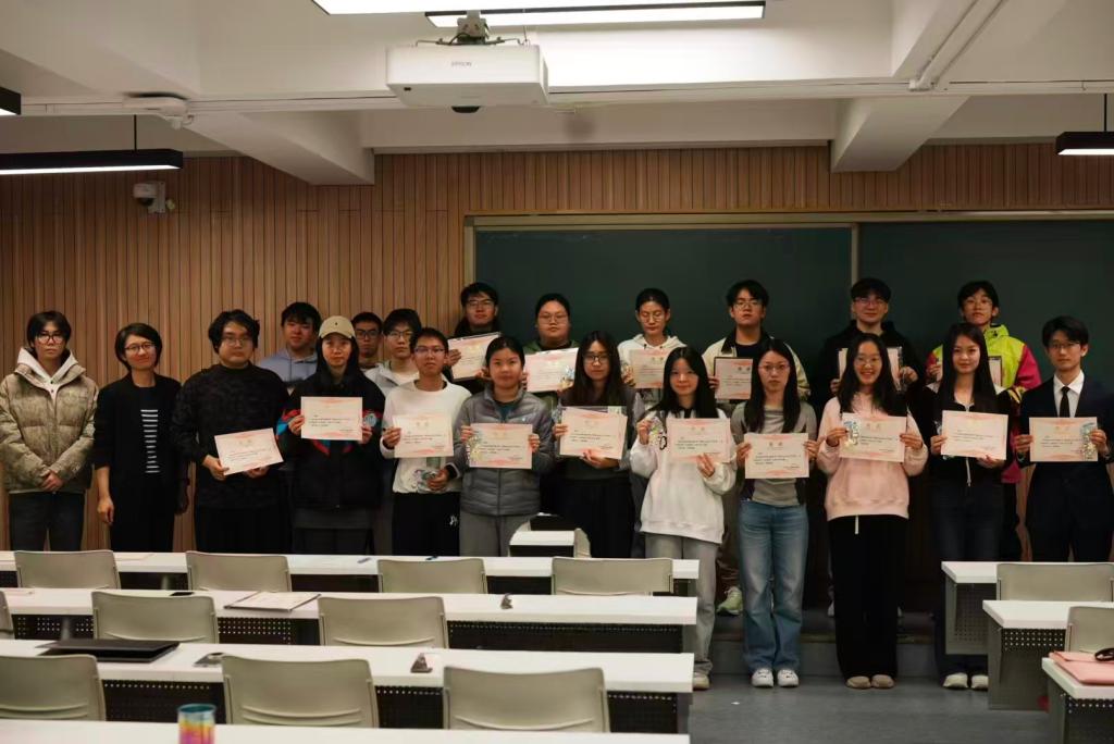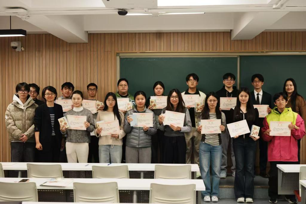 学院党委副书记周晨、院团委书记巴蕾、院团委副书记柴新凯为获奖学生颁发证书和纪念品。周晨在致辞中肯定了同学们展现的自律进取与成长蜕变,鼓励大家将假期形成的良好习惯转化为新学期学习生活的内生动力,不断向内扎根、向上生长,做坚定笃行、眼里有光、朝气蓬勃的中财大青年。