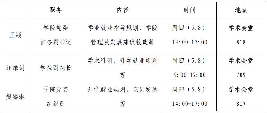 “书记院长开放日”旨在搭建师生交流的平台,畅通问题反馈渠道,进一步加强学院领导与师生之间的交流,倾听学生心声,了解学生所想,回应学生诉求,服务学生成长,集思广益、凝聚共识,切实解决学生在学习生活中遇到的问题,持续营造开放、包容、和谐的学院氛围。