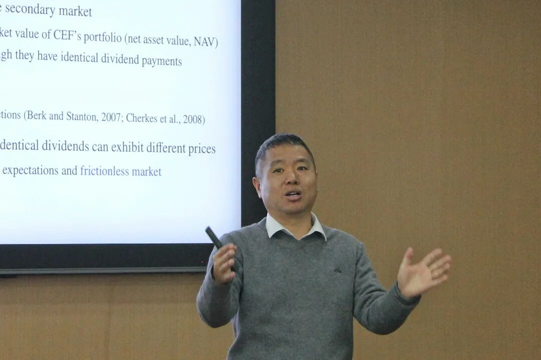 讲座中,王鹏飞教授分享了与美国纽约大学Jess Benhabib教授、香港科技大学博士后Zhaorui Li和香港大学Xuewen Liu教授合作完成的论文。论文深入探讨了资产价格过度波动的根源、机制及实证验证,发现普通的期望效用理论下只有一个符合基本面的均衡,相比之下,以参照点为依托的偏好能够产生多重均衡:一个符合基本面的均衡和一个太阳黑子(Sunspot)均衡,从而导致情绪驱动资产价格变动,为理解非基本面因素对资产定价的影响(或者情绪导致股灾)提供了全新理论框架与经验证据。论文通过严谨的理论分析和系统的实证检验,为资产定价提供了一个新的行为经济学解释,对理解市场情绪与资产价格波动的关系,进而理解股票溢价之谜(equity premium puzzle)、对完善资产定价理论体系具有重要学术价值,也为市场参与者与政策制定者提供了有益参考。
